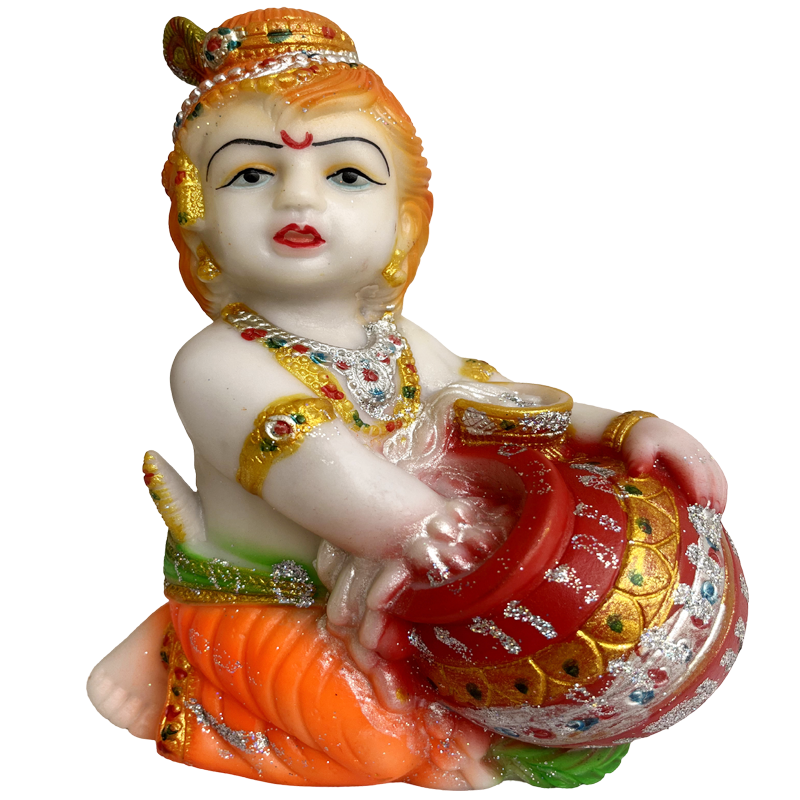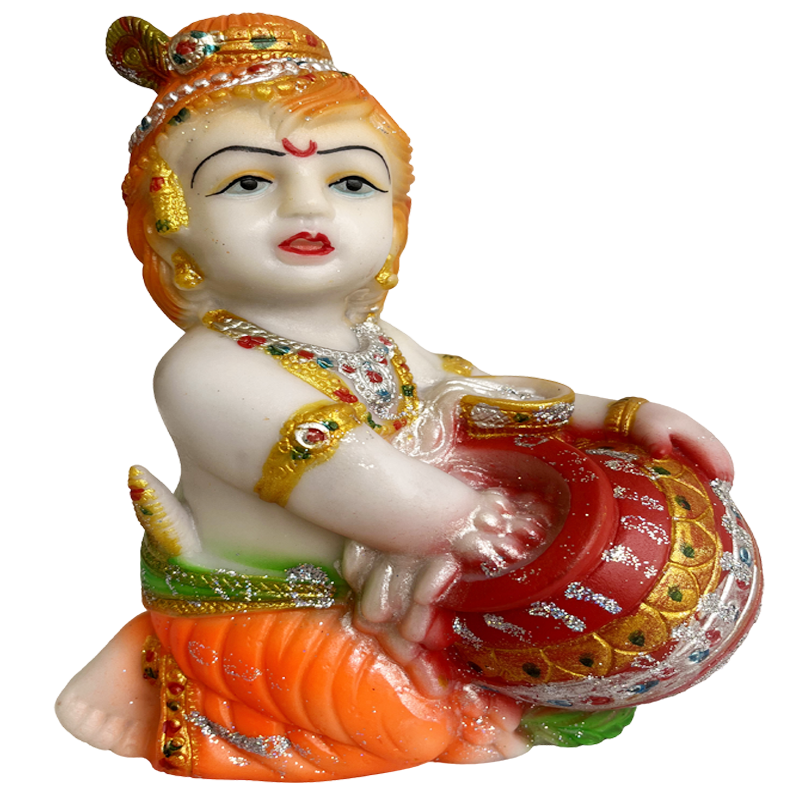 This is idol of cute little Makhan Chor krishna , this Idol Divine Hindu Goddess Statue Sculpture can be used as Pooja Ghar/ Mandir Interior Decoration Accessories / Table /Home Decor