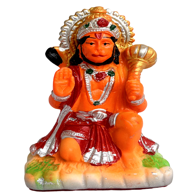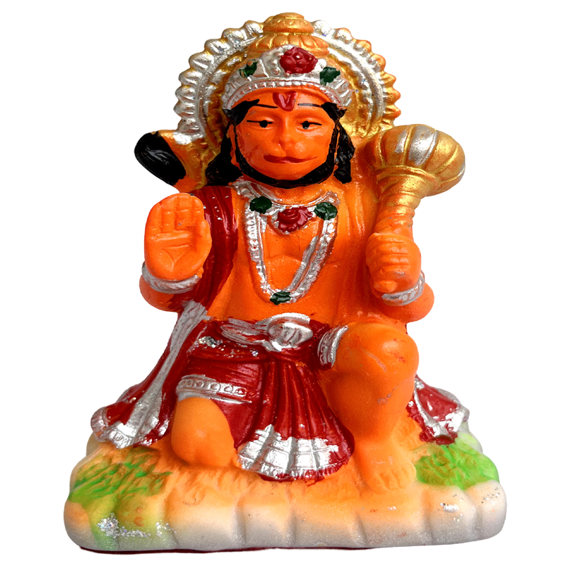 - Hanuman Ji Murti Blessing with Lord Balaji Bajrangbali Sankat Mochan Bhagwan Idol for Temple Car Dashboard Home Decor Statue Gift Hanuman(Murti) (Ashirwad Orange Hanuman Ji)